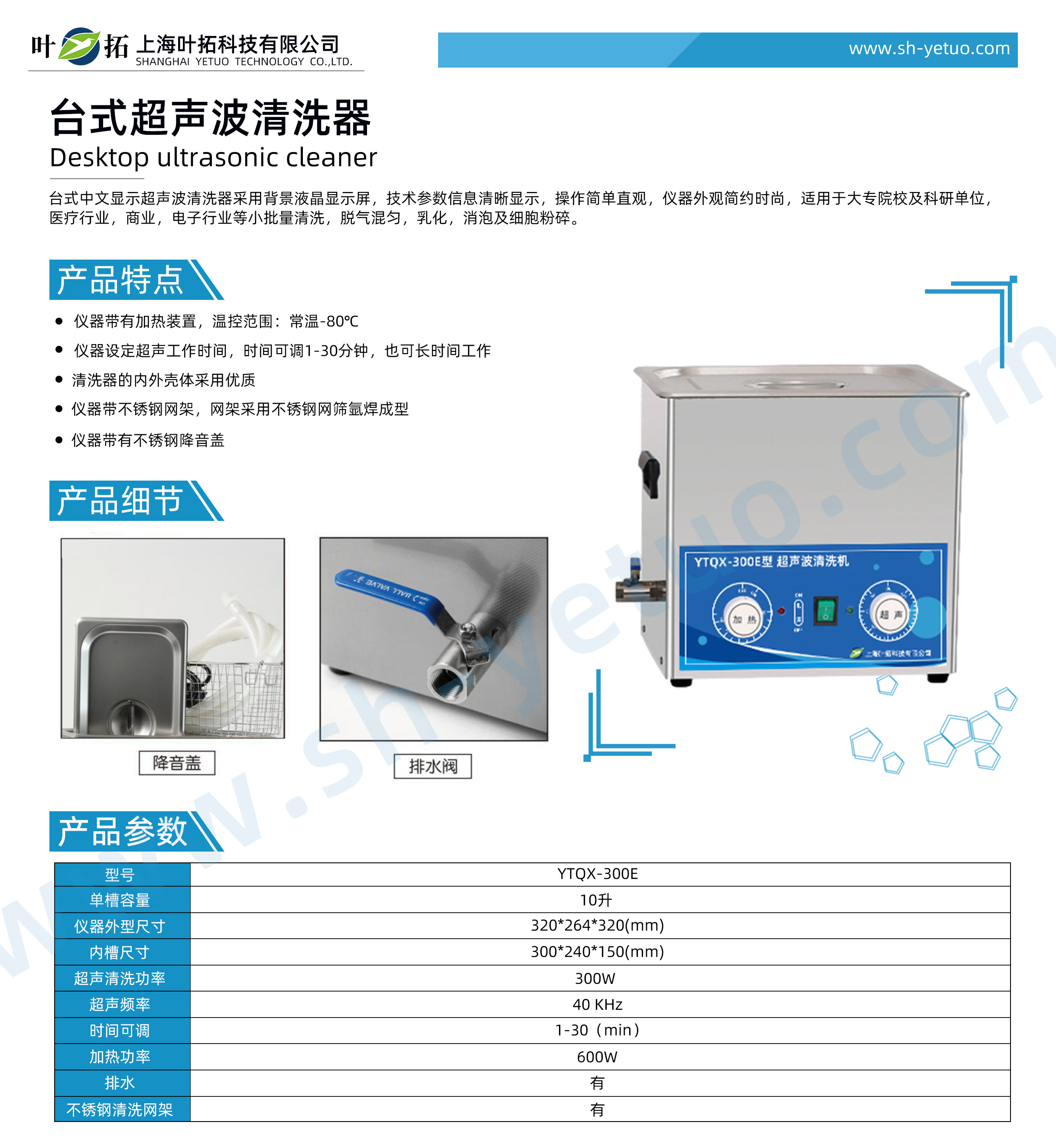 叶拓 YTQX-300E 台式超声波清洗机详细参数